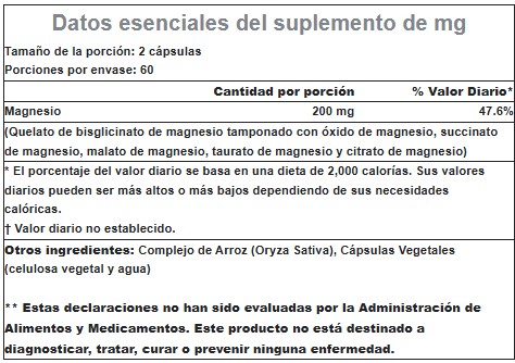 Bisglicinato de Magnesio → forma quelada con baja probabilidad de generar molestias digestivas.
