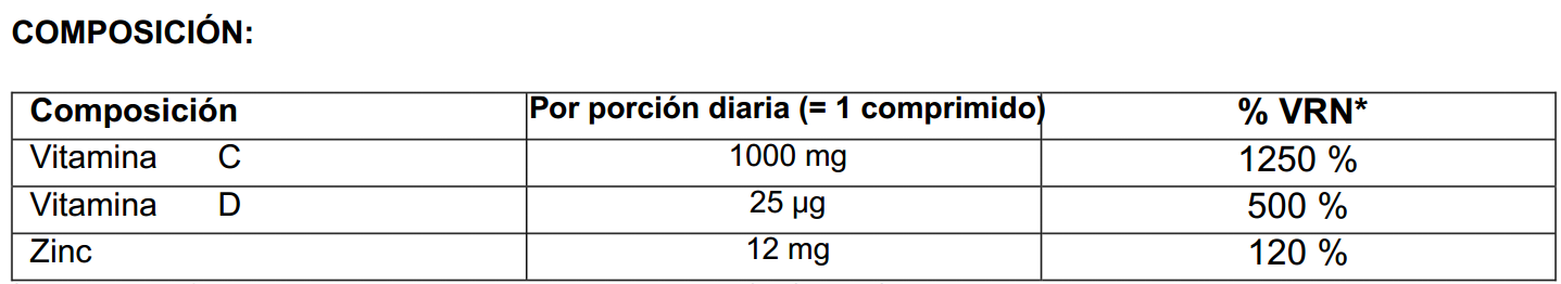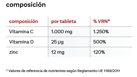 Más 1000 UI de vitamina D3 y 12 mg de zinc